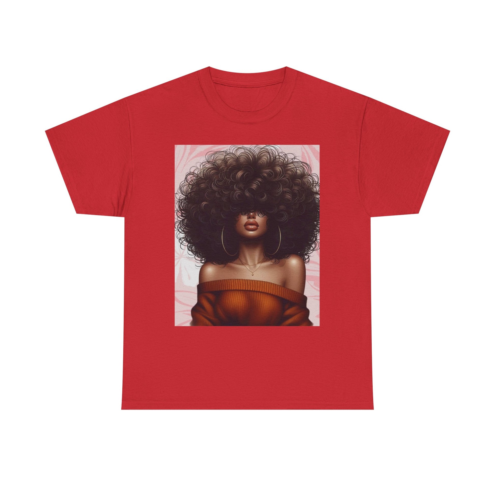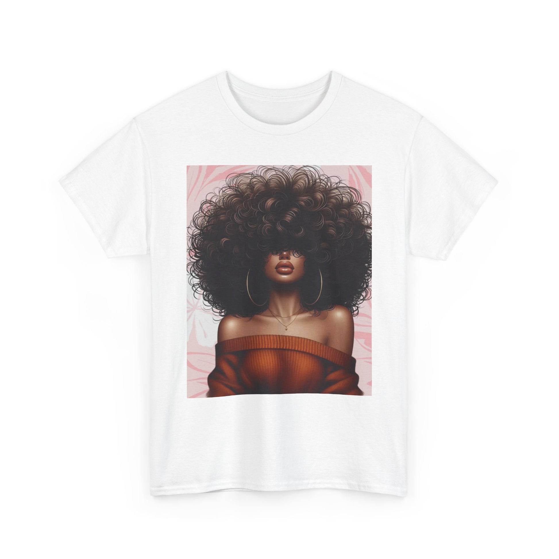 This tee carries quiet confidence. A soft, durable cotton shirt anchors a bold portrait: a woman with a voluminous afro, warm brown tones, and a poised, soulful stare. It feels like city nights and slow Sundays—an easy staple that elevates a simple outfit without shouting. Wear it with denim and boots for relaxed edge, or layer under a blazer to let the artwork do the talking. The vibe leans modern, proud, and artful—made to be lived in and seen.