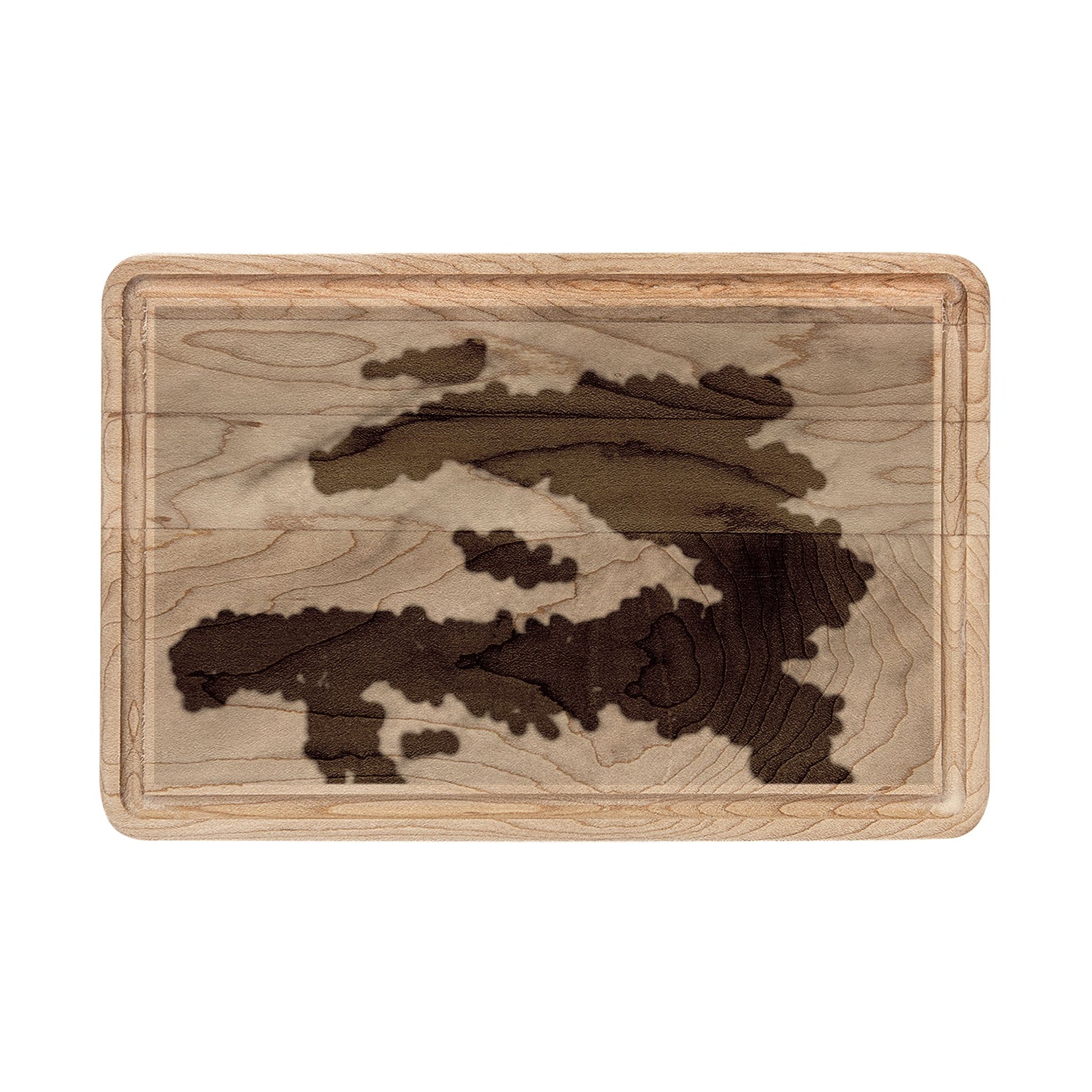 Engraved Lake Map Wooden Cutting Board — Personalized Topographic Charcuterie Board